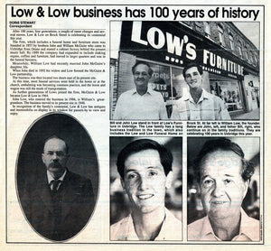 Bill Low came into the business in 1949. In 1964 the original name of McGuire and Low, was changed to Low and Low upon incorporation. In 1988 John Low, the fifth generation joined the business. Our store has undergone many changes in the past year, and we are pleased to present a newly renovated bed shoppe and store front. Moving forward, we have exciting plans of further expanding our store and offer a greater selection of living and dining room furniture; and welcoming our 6th generation into the business. At Low’s we pride ourselves on providing great quality and selection of unique furnishings at reasonable prices, with small town friendly service.
